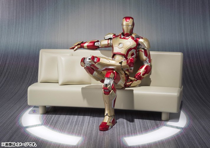 These S.H.Figuarts of Iron-Man Mark 42 (accompanied by a sofa) and Iron-Patriot, 15 and 16 cm, will release in next September.