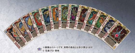 In March 2012 came out a collection of the Rouse Card from Kamen Rider Blade series. In this collection, there were maps of each Undead and their « blank » versions without the Undead inside and some cards in brilliant format or with a different color.