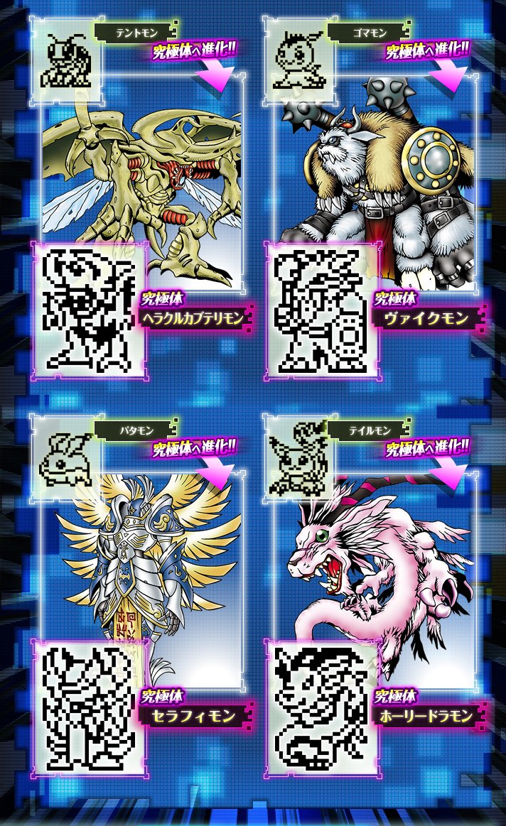 Pour les 15 ans de la franchise Digimon, Bandai ressort des Digivice (l’appareil qui permettait les différentes transformations) de deux des héros de la série Digimon Adventure de 1999. D’une manière similaire que le concept de base des premiers jouets d’il y a 15 ans qui était proche des célèbres Tamagotchi, vous pourrez choisir l’une des huit différentes principales créatures de la série que vous pourrez faire évoluer jusqu’au dernier niveau Kyukyokutai.