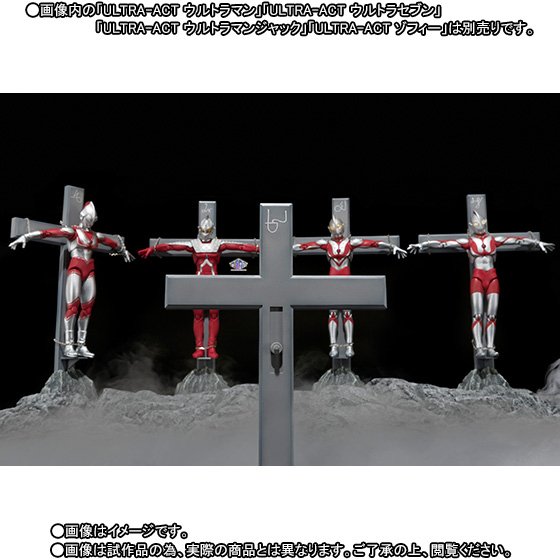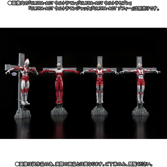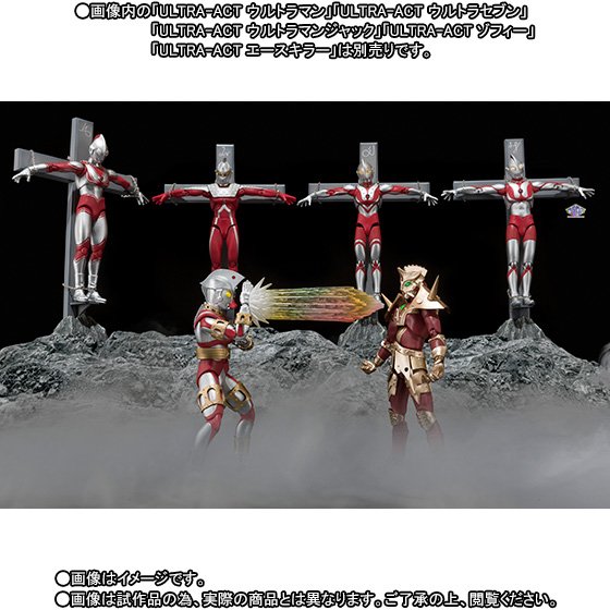 Ce Set ULTRA-ACT sera composé de Ace Robot et Golgotha Hoshi (cinq crucifix) et sera disponible en Mars prochain. Les figurines de Ultraman, Zoffy, Ultraseven, Ultraman Jack, Ultraman Ace et Ace Killer ne sont pas incluses.