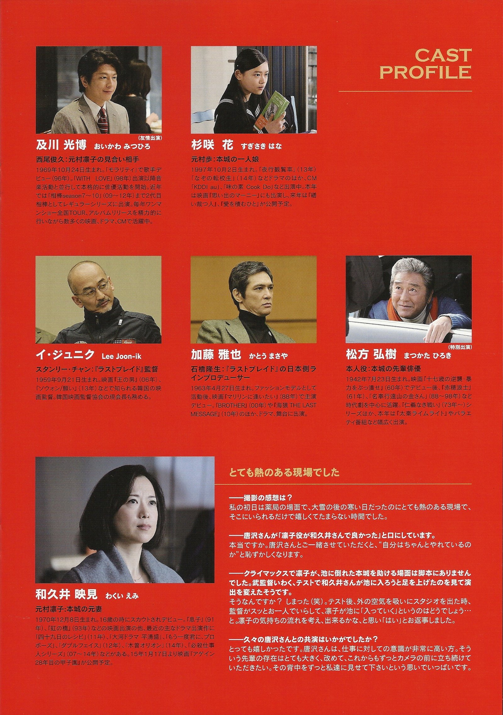 Ryo Ichinose, dispite his chance, is not very eager to take the job of fight choreographer very seriously and treats the staff with contempt. He doesn’t care about people and the material, espacially actors like Honjo. But the veteran, who is never at a loss for words, quickly puts his back in his place but Ichinose doesn’t care.