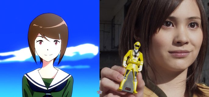Mais ils ne sont pas les seuls de la distribution vocale de Digimon Adventure Tri à avoir déjà travaillés pour le Tokusatsu car trois de leurs collègues ont aussi prêté leurs voix. Yoshimasa Hosoya, le nouvel interprète du personnage Yamato Ishida est passé par la série Kamen Rider OOO en donnant sa voix au monstre papillon Ageha Yummy.