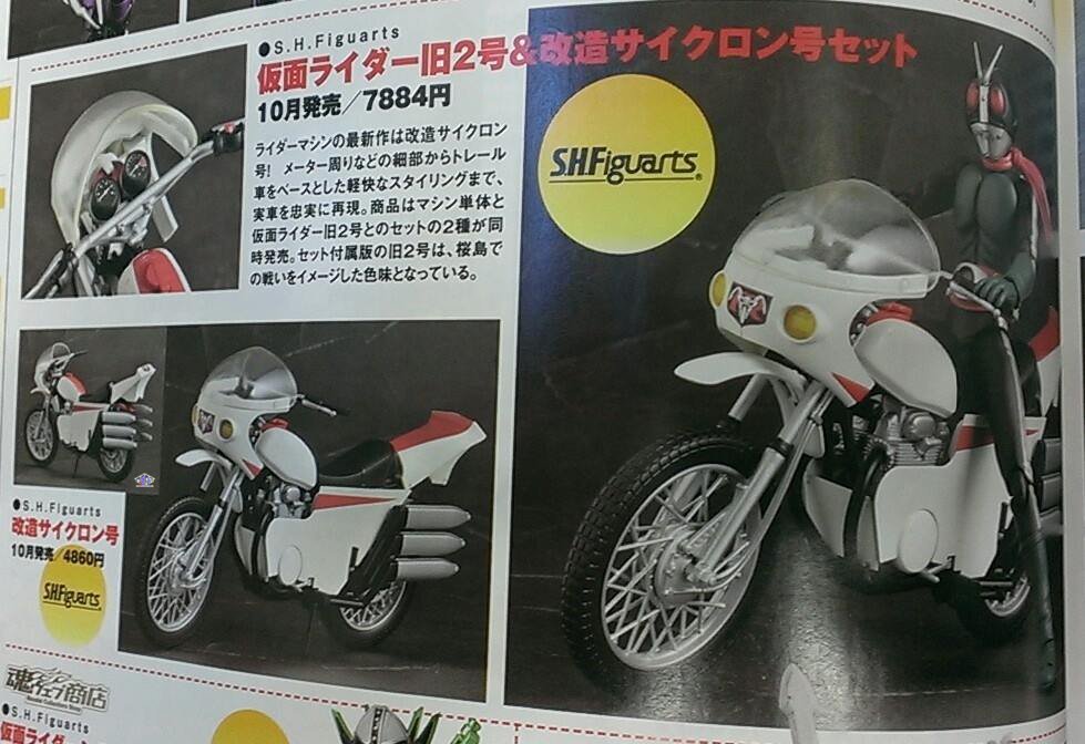 Kamen Rider Sango est le personnage principal du film Super Hero Taisen GP sortis en Mars dernier dans les cinémas Japonais. Dans ce film, l’histoire des Kamen Rider est réécrite et dans ce monde l’organisation maléfique Shocker créera deux autres Rider à la suite de Ichigo et Nigo : Kamen Rider Sango et Yongo. Dans l’histoire originale des Kamen Rider et surtout la première série débutée en 1971, les héros avait une première moto appelée Cyclone. Une première S.H.Figuarts de cette moto est déjà sortie en Août 2013 et cette nouvelle version est un remodelage. Elle sortira comme la figurine de Kamen Rider Sango en Octobre prochain et sera pour l’occasion proposée également dans un ensemble avec la figurine de Kamen Rider Kyu Nigo (qui est le personnage dans son apparence de ses débuts dans la série).