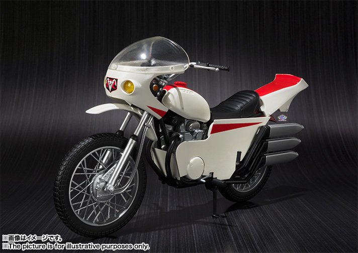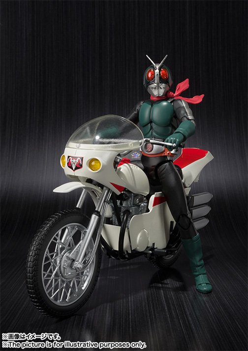 Kamen Rider Sango is the main character of the Super Hero Taisen GP movie which was released in last March in the Japanese theaters. In this movie, the story of Kamen Rider is rewritten and in this world the evil organization Shocker will create two more Rider after Ichigo and Nigo : Kamen Rider Sango and Yongo. In the original story of Kamen Rider and especially the first series started in 1971, the first motorcycle of each heroes was called Cyclone. A first S.H.Figuarts of this motorcycle was already released in August 2013 and this new version is a remodeling. It will be released, as the figure of Kamen Rider Sango, in next October and will be also available for the occasion in a set with the figure of Kamen Rider Kyu Nigo (which is the character in his debuts appearance in the series).