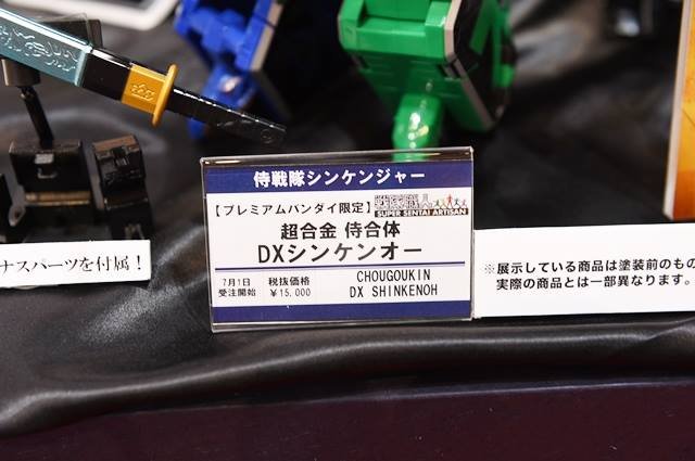 Depuis l’apparition d’une ombre bleutée dans les pages d’un magazine l’année dernière, voici enfin de vrais images du DX Chogokin Shinken-Oh de la série Samurai Sentai Shinkenger qui sera vendu dans la gamme Super Sentai Artisan et par le site de Premium Bandai et disponible en Décembre prochain. Comme les robots de la série Ressha Sentai Toqger, seuls certaines parties seront en métal, dont évidemment son sabre. Concernant Shuriken Sentai Ninninger, voici aussi une première image du DX Chogokin Otomonin Rodeomaru qui avait déjà annoncé depuis le début du mois de Mai. Comme le Shinobimaru avant lui, il sera entièrement articulé et compatible avec les robots DX de la série.