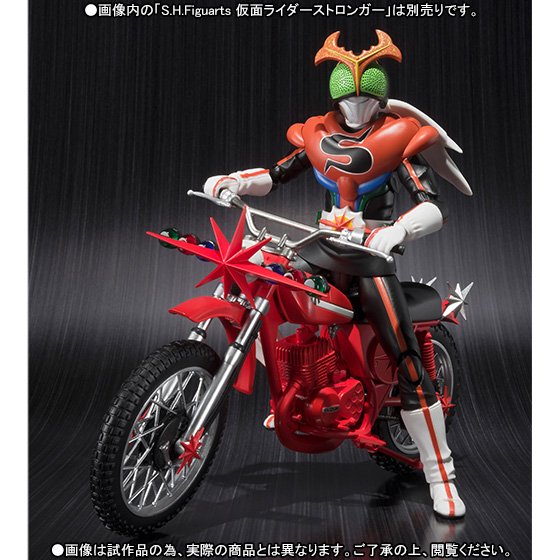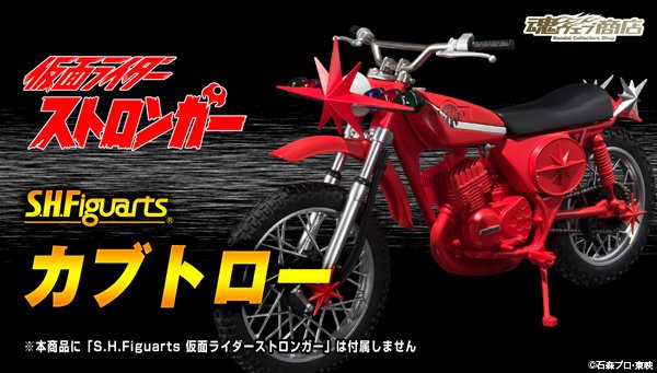 After Kamen Rider Drive, here is the second figure for the Type Dead Heat form : S.H.Figuarts Kamen Rider Dead Heat Mach. As in the series, between the two characters the form is not much difference apart from the helmet and some equipments. Scheduled for release in next December, this new figure will come with a special tray for Shift Car. Moreover, the same month also will be released in S.H.Figuarts the personal mount of the hero Kamen Rider Stronger : the Kabutolaw. The motorcycle will be for the occasion sold alone and also in a set with the figure of Kamen Rider Stronger.