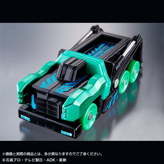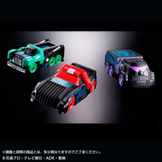 Après la figurine S.H.Figuarts de Kamen Rider Cho Dead Heat Drive il y a quelques jours, Surprise Future, le film de la série Kamen Rider Drive, est à nouveau à l’honneur. C’est plus précisément l’antagoniste du film, Kamen Rider Dark Drive, qui a l’exclusivité ici. hormis la Shift Car dont il se sert pour sa transformation, il possède un trio de Shift Car qui sont des versions différentes de Shift Car dont se sert aussi Kamen Rider Drive : Shift Next Hunter (pour Justice Hunter), Shift Next Traveller (pour Deco Traveller) et Shift Next Builder (pour Technic). C’est donc ces trois Shift Car qui sortent toutes les trois dans un ensemble spécial qui sera disponible en Décembre prochain par le site de Premium Bandai.