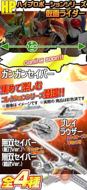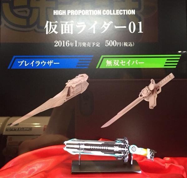 Au même salon a été dévoilée une nouvelle gamme de reproductions miniatures d’accessoires de séries Tokusatsu. Cela s’appelle High Proportion Collection et s’intéresse pour l’instant aux équipements des séries Kamen Rider et Super Sentai. Seules deux armes, le Gan Gan Saber de Kamen Rider Ghost et le Zyusoken de Dragonranger de la série Kyoryu Sentai Zyuranger, ont leurs prix et dates de sorties de renseignés pour le moment. D’autres équipements ont déjà été annoncés et sont les deux Muso Saber de la série Kamen Rider Gaim, le Blay Rouzer de Kamen Rider Blade et les deux Buckler de Kyoryu Sentai Zyuranger. Leurs tailles ne dépassera pas la quinzaine de centimètres pour un prix assez modique.
