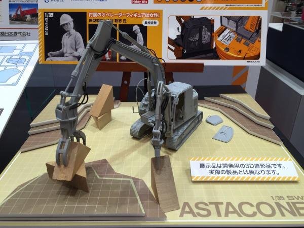 Enfin, toujours dans ce même salon, était présente une reproduction de la machine de chantier nommée Astaco du constructeur Japonais Hitachi. Une majorité d’entre-vous se demanderont surement pourquoi parler de cet engin ici et je vais vous le dire. Un modèle de cet excavateur est utilisé dans le film Kamen Rider Drive : Surprise Future par le Paradox Roidmude contre Kamen Rider Mach et Kamen Rider Chaser avec le Ride Booster Set et le Ride Crosser. Cet Astaco miniature n’est néanmoins pas une reproduction parfaite du modèle utilisé dans le film.