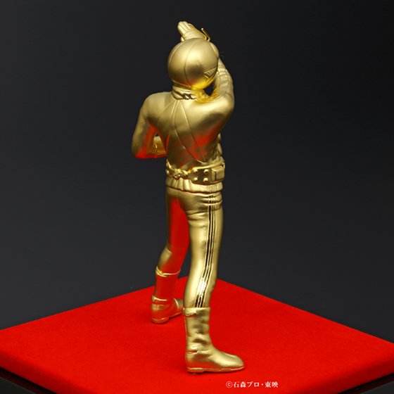 Qui n’a jamais rêvé d’avoir une statuette de Kamen Rider en or tel un Oscar de la célèbre cérémonie Américaine ? Personne ? Eh bien Bandai l’a quand même fait pour vous ! C’est en partenariat avec l’entreprise presque tricentenaire Tokuriki Honten spécialisée dans les métaux précieux que Bandai propose une statuette de Kamen Rider Shin Ichigo en or massif de vingt-quatre carats pesant trente-cinq grammes pour une hauteur de dix centimètres et munie d’un présentoir.