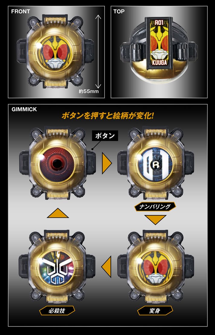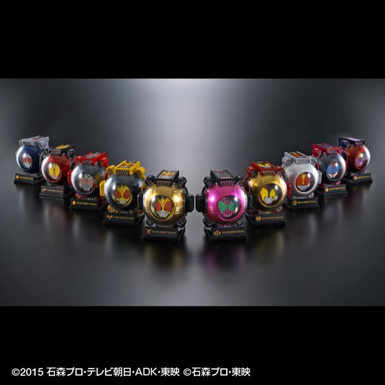 Comme chaque année, une majorité des Kamen Rider font l’objet d’une adaptation de l’objet à collectionner du héros actuel. Cette année c’est donc Kamen Rider Ghost et ses Ghost Eyecon qui sont aux couleurs des héros des années précédentes. C’est tout un ensemble qui sortira en Mai prochain et il regroupera les dix Kamen Rider principaux et titres de leurs propres séries de 2000 à 2009 qui sont : Kuuga, Agito, Ryuki, Faiz, Blade, Hibiki, Kabuto, Den-O, Kiva et Decade. Ces Legend Rider Ghost Eyecon seront fournis avec dix socles correspondants et à leurs noms ainsi que six supplémentaires pour six autres héros qui sont : Double, OOO, Fourze, Wizard, Gaim et Drive. Les Ghost Eyecon de ces six autres Kamen Rider ne seront cependant pas inclus avec cet ensemble pour être vendus séparément plus tard.