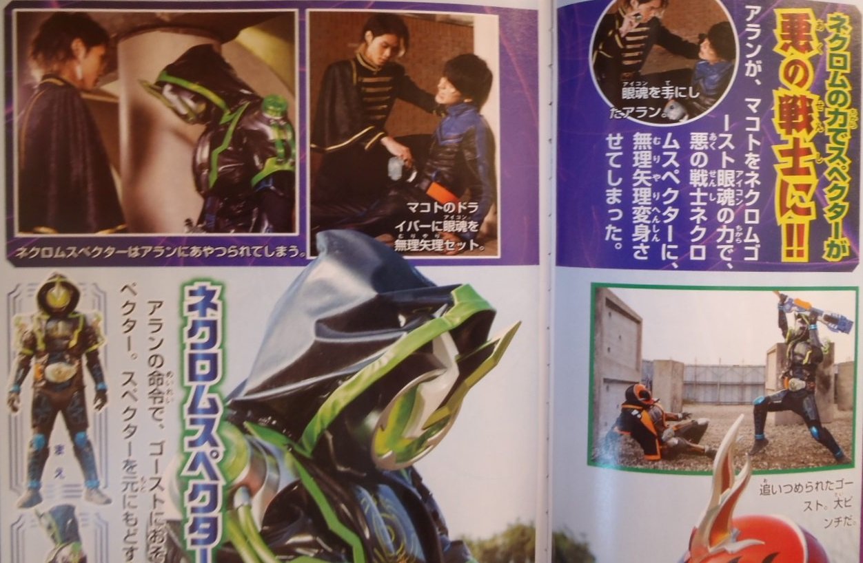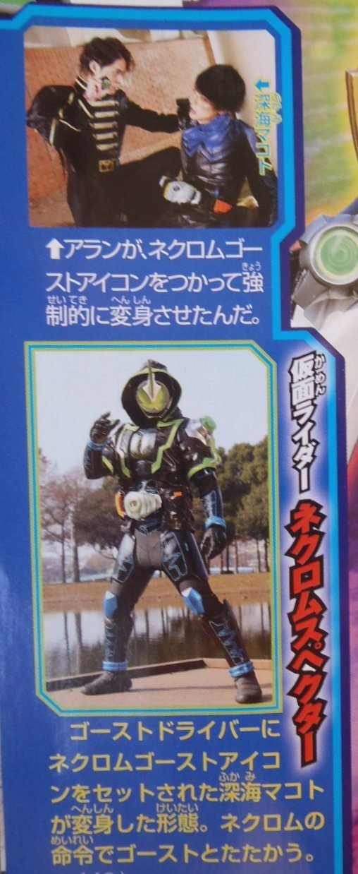 For starters, he will be a formidable opponent as Kamen Rider Necrom, and also, be careful he doesn’t hold a personal grudge against you. He will force Makoto to use his Necrom Eyecon to become Necrom Specter. Doing so, Makoto will be under his influence and he will force him to fight Takeru.