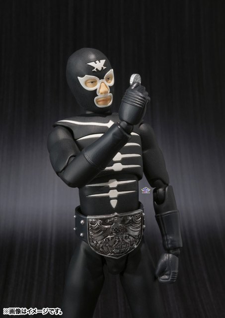 They are ones who have the honor this month to release in S.H.Figuarts figure, in the accompanying of Kamen Rider Ichigo figure releasing simultaneously. Wearing the fetish black uniform and with skeletal pattern of Shocker Sentoin, this S.H.Figuarts of a fifteen centimeters will have disposal its accessories : the usual set of various hands, a stick from Shocker organization (different than Ichigo), a knife from Shocker organization and an additionnal hand with a Cell Medal from the series « Kamen Rider OOO » referring to the movie « OOO, Den-O, All Riders : Let’s go Kamen Riders », released in 2011 for 40 years of the franchise.