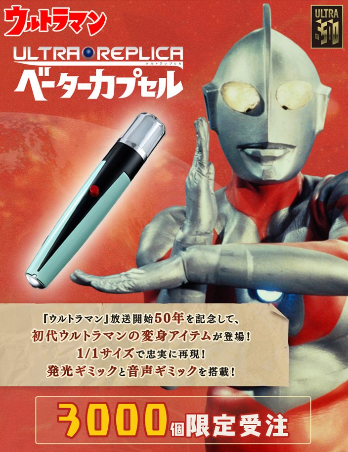 Les Beta Capsule et Spark Lens sont les objets permettant aux hôtes du premier Ultraman et Ultraman Tiga de faire apparaître ces héros géants sur Terre dans leurs séries respectives. Ces deux objets vont lancer en Novembre prochain une nouvelle gamme nommée ULTRA REPLICA offrant une meilleure version de ces jouets que les DX sortis à l’époque des séries Ultraman et Ultraman Tiga. Ces Beta Capsule et Spark Lens seront disponibles via le site Japonais de Premium Bandai et chacun limité à trois-mille exemplaires.