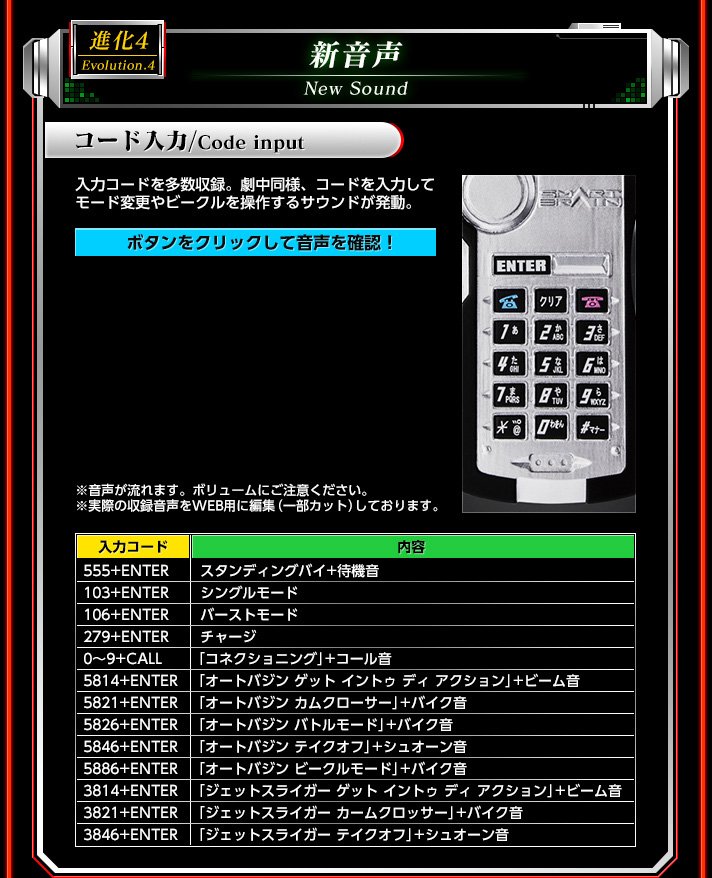 Cette version de bien meilleure qualité du Faiz Gear que les jouets DX de l’époque de diffusion de la série Kamen Rider 555 qui sera disponible en Septembre prochain aura son lot de petites surprises. Ainsi, dans le Faiz Phone, outre les sons déjà présent à la base et à activer également par codes, il y aura des sons supplémentaires concernant deux véhicules utilisés par le héros dans la série : l’Auto Vajin et le Jet Sliger. Des lumières supplémentaires seront aussi sur les différentes parties de l’ensemble dont les deux lignes rouges de la ceinture et le Faiz Pointer pourra aussi projeter la marque du héros. Mais dans tout cela la réelle nouveauté sera de faire réagir les Faiz Pointer et Faiz Shot à l’activation de l’Exceed Charge à la ceinture via l’ajout d’un système de communication sans fil.