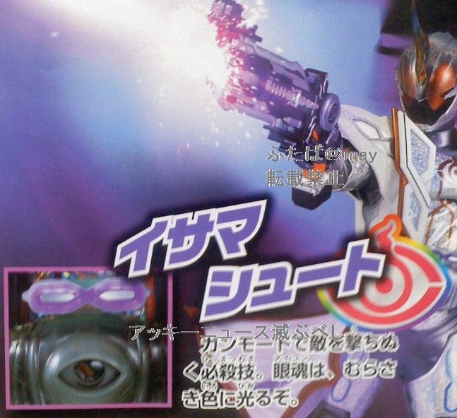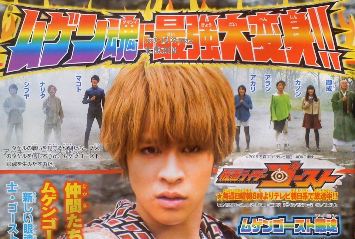 When Makoto, Alain, Akari, Onari, Narita, Shibuya and Kanon combine their hearts, the Mugen Ghost Eyecon appears and Takeru has access to his most powerful form : Ghost Mugen Damashii !