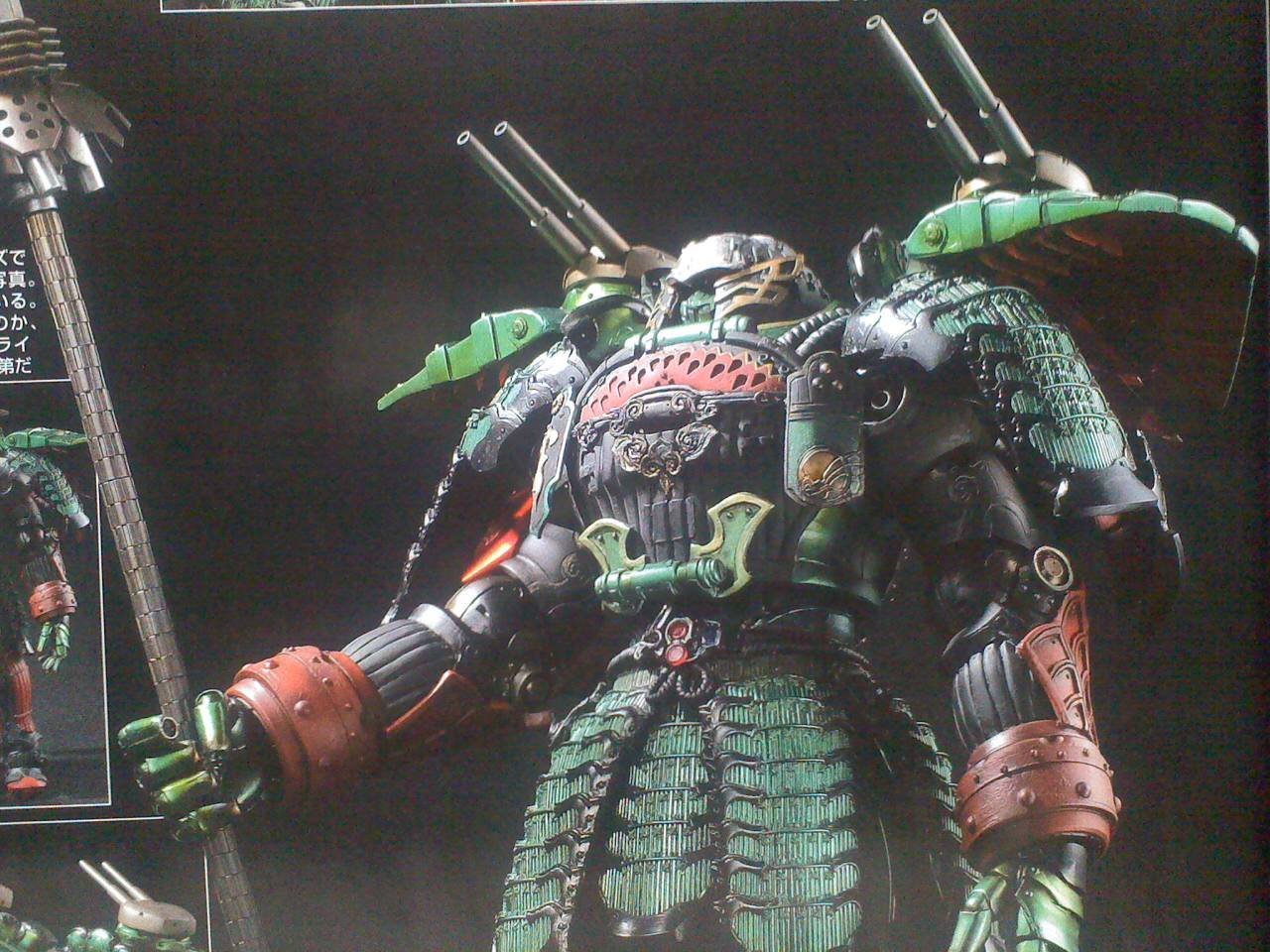 After the figures of Kamen Rider Gaim Orange Arms and Kamen Rider Zangetsu Melon Arms, we continues S.I.C. from the Kamen Rider Gaim series ! Here is the big piece with the Suika Arms, an huge armor. Notably used by the hero Kamen Rider Gaim during the series, she is here dedicated to Kurokage Trooper, a squad made from Kamen Rider Kurokage Matsubokkuri Arms. It is not however specify the price or the release date or whether it is actually a different version sold separately from the S.I.C. Kamen Rider Gaim Suika Arms view at the Tamashii Feature’s 2016 exhibition few weeks ago.