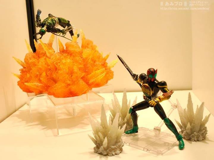 Mis à part les figurines Kamen Rider, présentes en presque totalité, de nouveaux Effect Part sont présentés. Cela va des explosions aux divers impacts en passant par les flammes, avec en accompagnement, des escaliers, pour y déposer vos figurines, avec les lumières des Glowing Stages. Tout ça, à découvrir ci-dessous :