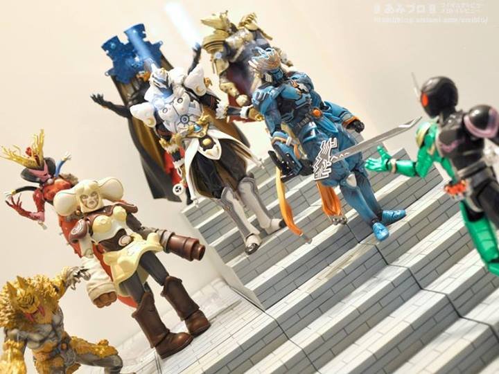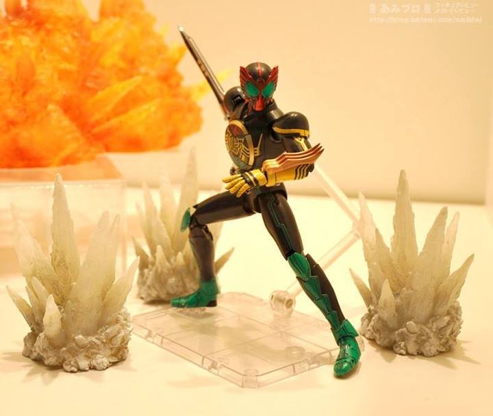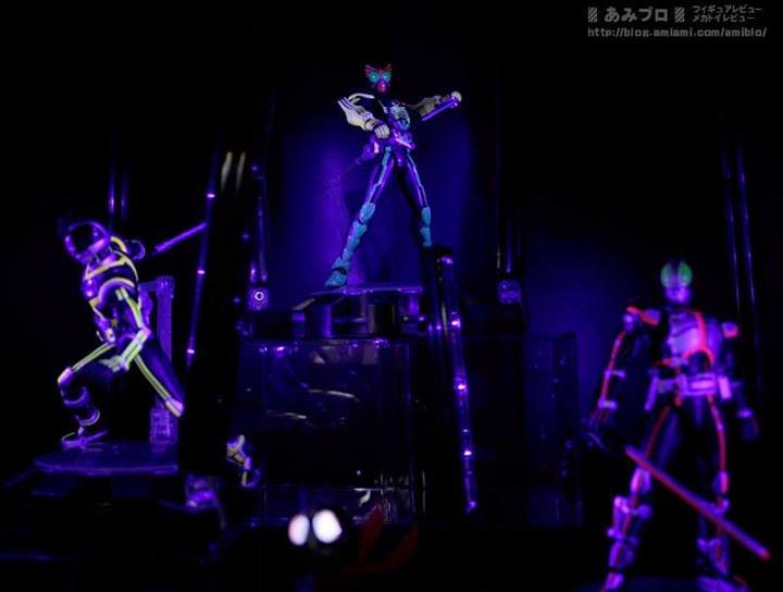Aside from Kamen Rider figures, present in almost all, new Effect Part are presented. This is mainly impacts and the various explosions with the flames, with for accompaniment, steps, to drop your figures, together with Glowing Stages lights. All this, to discover below :