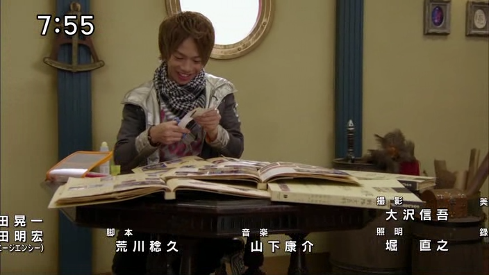 Yamato finds Gai’s (GokaiSilver) encyclopedias and finds out about the other Super Sentais.