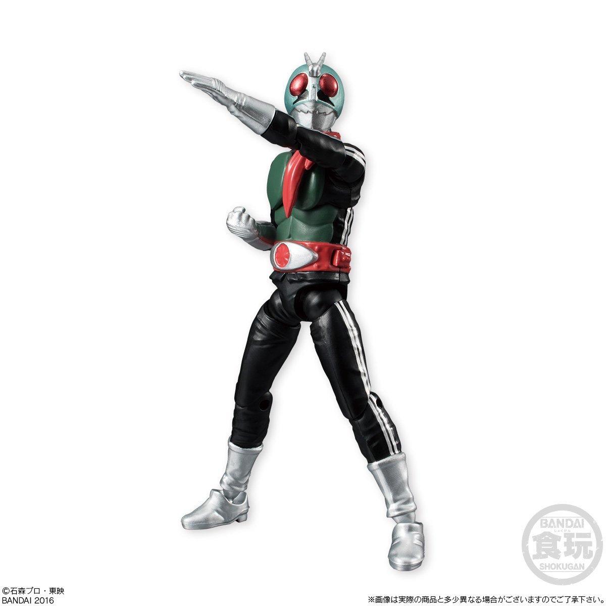 In these new set of SHODO figures (action figures of 10 cm in height each) available in next December we have : Kamen Rider Shin Ichigo, Kamen Rider Shin Nigo, two Shocker Rider, Kamen Rider Amazon and Kamen Rider Black RX. The SHODO figures are sold under the same principle as the Candy Toy products. In this present case, these six figures from Kamen Rider franchise will be sold in a set of ten where there will be at least one figure of each for Ichigo, Nigo, Amazon and Black RX and two Shocker Rider minimum so but where the four other copies will be double copies randomly distributed per copies of this set (for example, on ten so, you may well have the four heroes in double copies for two Shocker Rider or otherwise have six Shocker Rider and the four heroes with a single copy each). Note however in the case of Shocker Rider that the color of the scarf will be completely random even for the two copies of Shocker Rider confirmed of the set (there will be only for those two it is certain to not to have the same color for the scarf).