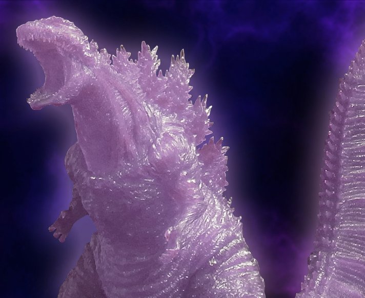 Here is again a new statuette at the effigy of Godzilla. It represents the monster in its final form who it has in the movie Shin Godzilla released in July 2016 in theaters in Japan. This statue of 25 cm tall and entirely of clear purple color will be available in next March and will be also totally phosphorescent.