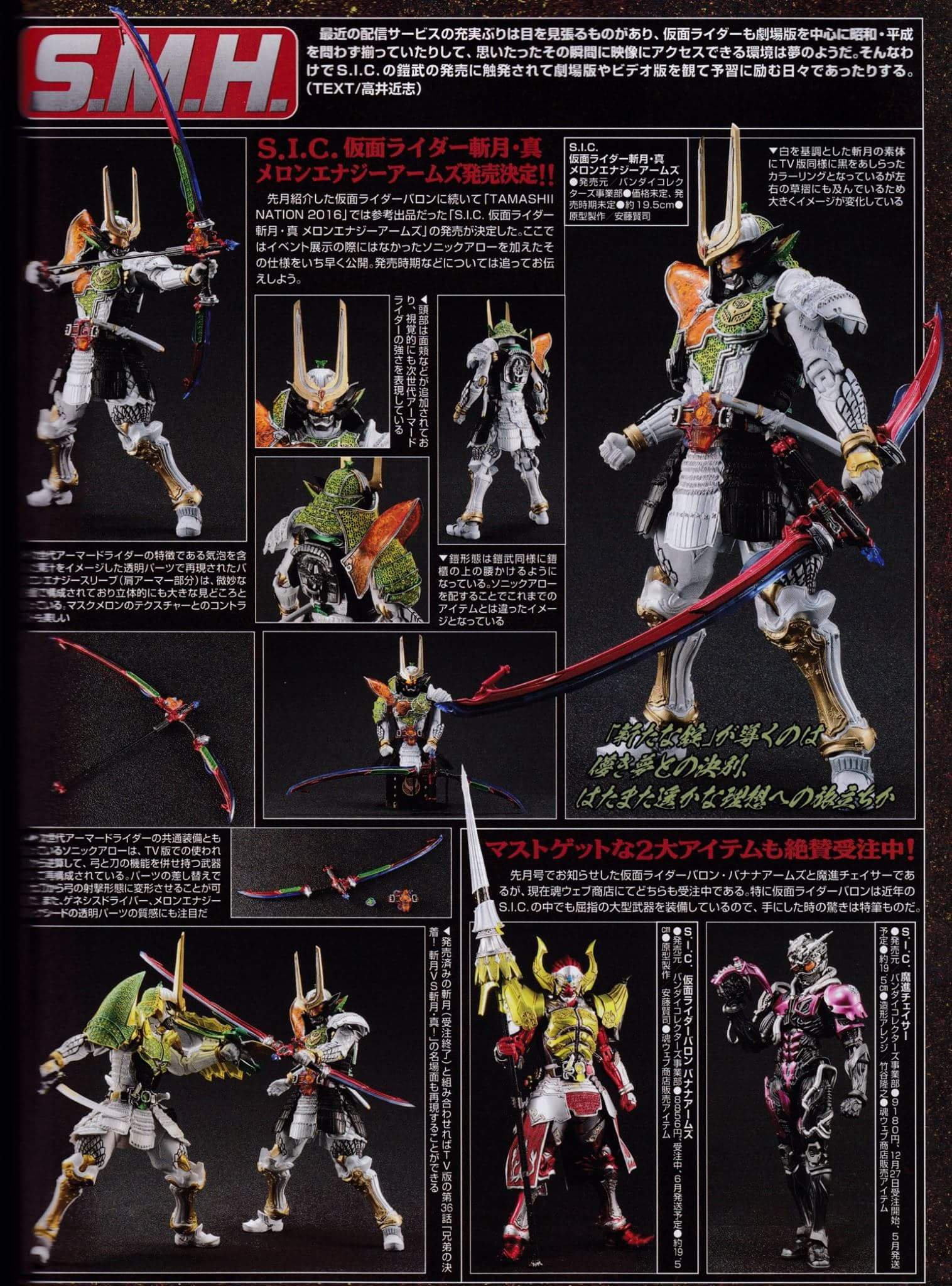 Continuant avec la série Kamen Rider Gaim, voici une suite logique après la figurine S.I.C. de Kamen Rider Zangetsu. Dans la série, le héros troquait son Sengoku Driver et son Melon Lockseed contre le Genesis Driver et le Melon Energy Lockseed et devenait Kamen Rider Zangetsu Shin. Équipée avec l’armure Melon Energy Arms, cette nouvelle figurine de 20 cm du héros sera, comme les S.I.C. de Kamen Rider Gaim avant celle-ci, accompagnée de quelques accessoires et également du nécessaire pour mettre l’armure et son armement en exposition. En revanche, ni la date de sortie ni le prix de sont encore connus.