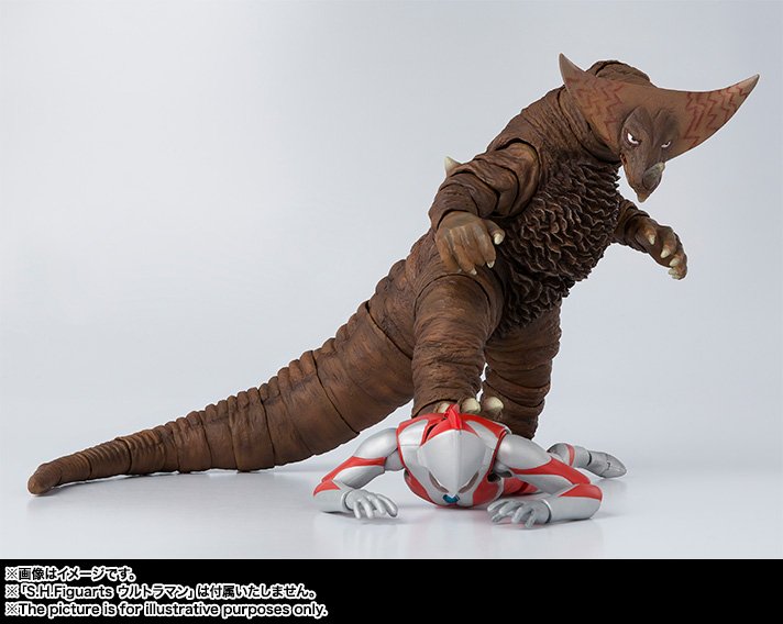 Here are three new S.H.Figuarts figures coming from the Ultraman franchise to coming in next July and August ! First, we have Gomora, an Ultraman opponent who appeared in his eponymous series in 1967. It is a legendary and ancient monster whose living specimen was found on an island in the Pacific Ocean. He will be later captive and exposed in a museum and soon became a threat in spite of himself which will be to be stopped by the hero Ultraman and his allies. Second, we have then two figures at the effigy of the hero Ultraman Orb. The first one, mainly red, represents his Origin The First form appeared in the series Ultraman Orb The Origin Saga exclusive to the video service of Amazon.com. The second one, predominantly black and silver, is his Origin form appeared for the first time in the television series Ultraman Orb.