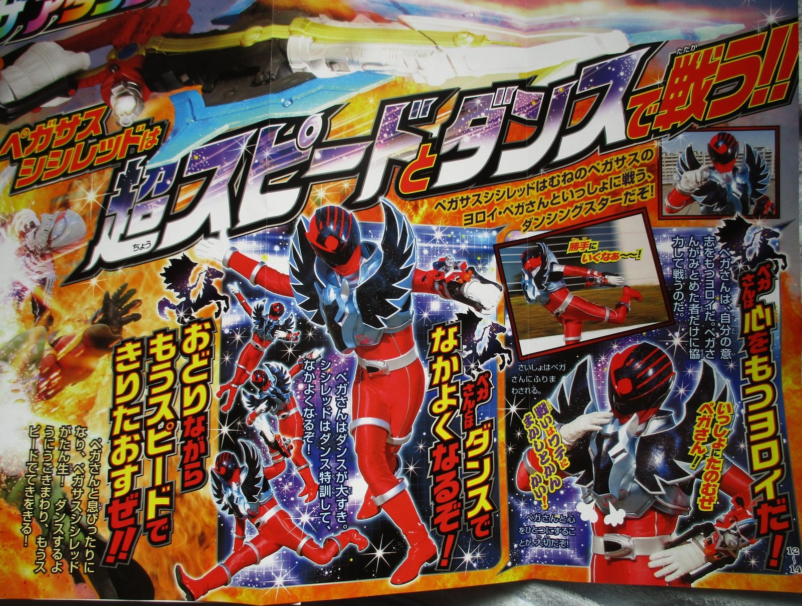 The Pegasus Kyutama (nicknamed Pega-san) will allow Lucky a body armour, super speed and the capacity to be a very good dancer. He will become the Dancing Star, Pegasus Shishi Red !