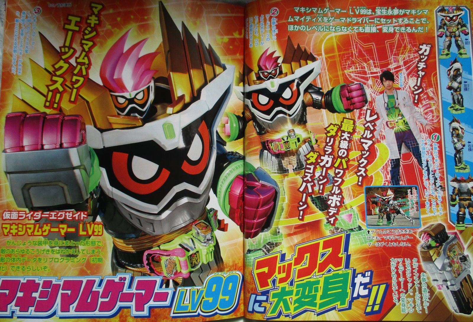 Thanks to the Maximum Mighty X Gashat, Emu will evolve into his most powerful form so far : Kamen Rider Ex-Aid Maximum Gamer Lv.99 !