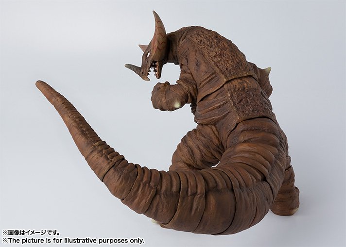 Gomora is an Ultraman opponent who appeared in his eponymous series in 1967. It is a legendary and ancient monster whose living specimen was found on an island in the Pacific Ocean. He will be later captive and exposed in a museum and soon became a threat in spite of himself which will be to be stopped by the hero Ultraman and his allies. This S.H.Figuarts figure of Gomora of 16 cm tall will be available in next July.