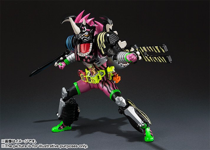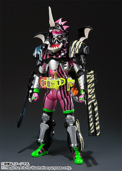 Dans la série Kamen Rider Ex-Aid, le héros possède différente formes associées un niveau numéroté. Ainsi, durant les neuf premiers épisodes il passe du Level 1 au Level 3. Il atteindra ensuite le Level 5 sans passer par le Level 4 avec le Drago Knight Hunter Z Gashat. Cette nouvelle forme nommée Hunter Action Gamer sera trop puissante et il devra partager une partie de son équipement avec Kamen Rider Brave, Kamen Rider Snipe et Kamen Rider Lazer. Cette figurine S.H.Figuarts de Kamen Rider Ex-Aid Hunter Action Gamer Level 5 de 16 cm sera disponible en Juillet prochain.