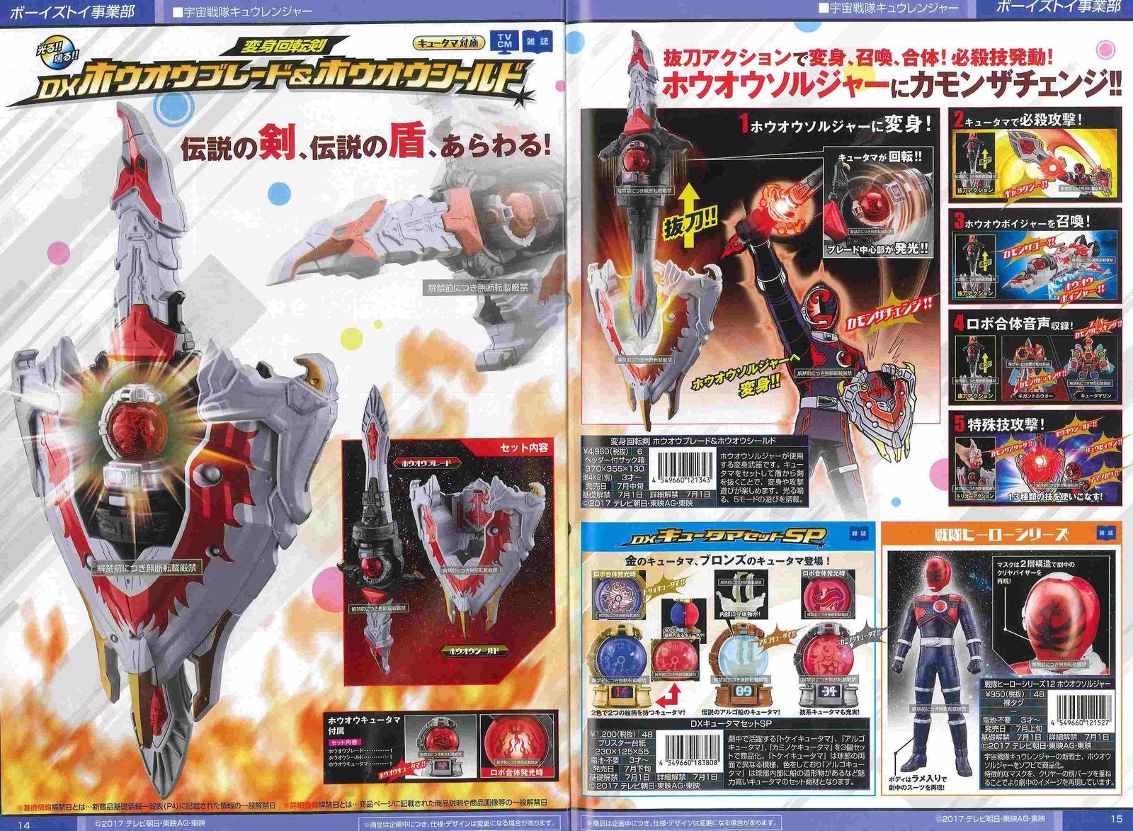 With the command « Come On The Go« , Houou Soldier will summon his 3-part mecha : Houou Voyager (the rocket), Houou Station (the satellite) and Houou Base. He will combine them into Gigant Houou with the command « Come On The Docking« .