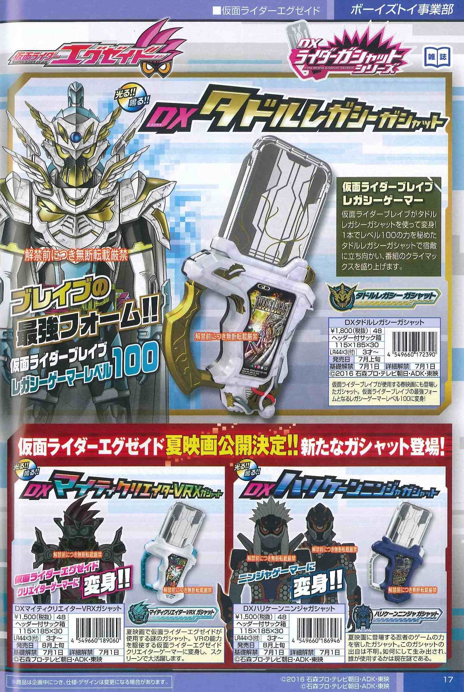 Already seen in the movie Cho Super Hero Taisen with Kamen Rider True Brave, the Taddle Legacy Gashat will evolve Brave into Taddle Legacy Gamer. Unlike True Brave with his level 50, this form will allow Brave to go to level 100 !