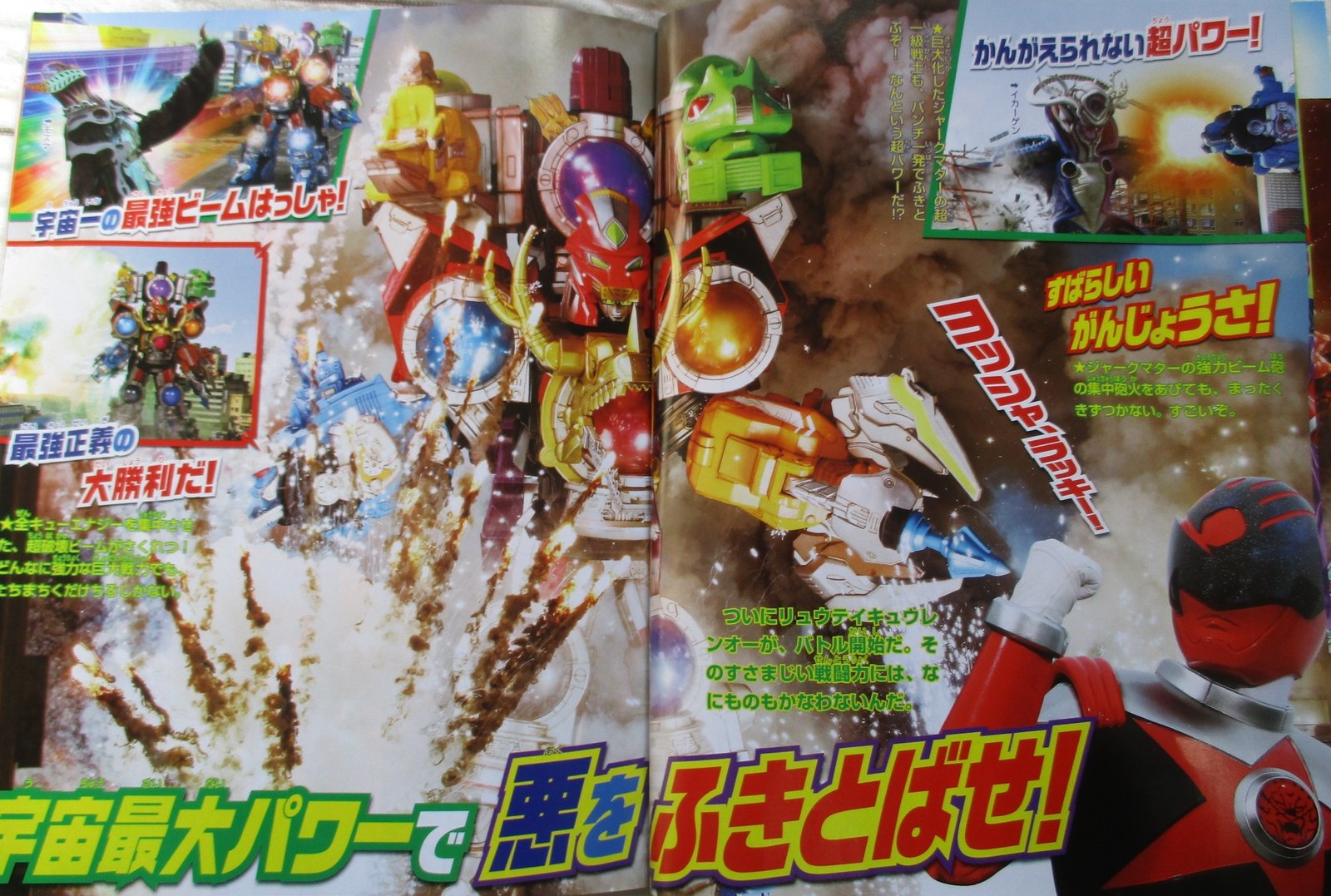 We already saw a few of them in the series but here are the special attacks of each Kyuranger. We also see their ultimate attack with 11 members : All Star Crush.