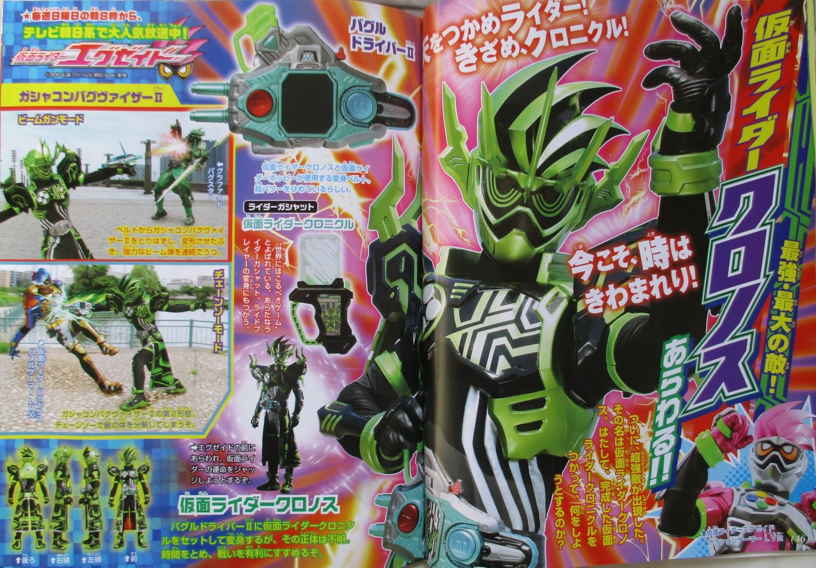 Par rapport à Chronos personnellement je m’attend à ce que ça soit quelqu’un qui se sert de Kamen Rider Chronicle comme couverture en se faisant passer pour un Ride Player lambda jusqu’a devenir assez puissant en tant que Ride Player pour pouvoir battre Poppy et récupérer le Buggle driver II sans que personne ne se doute de ses vraies intentions.