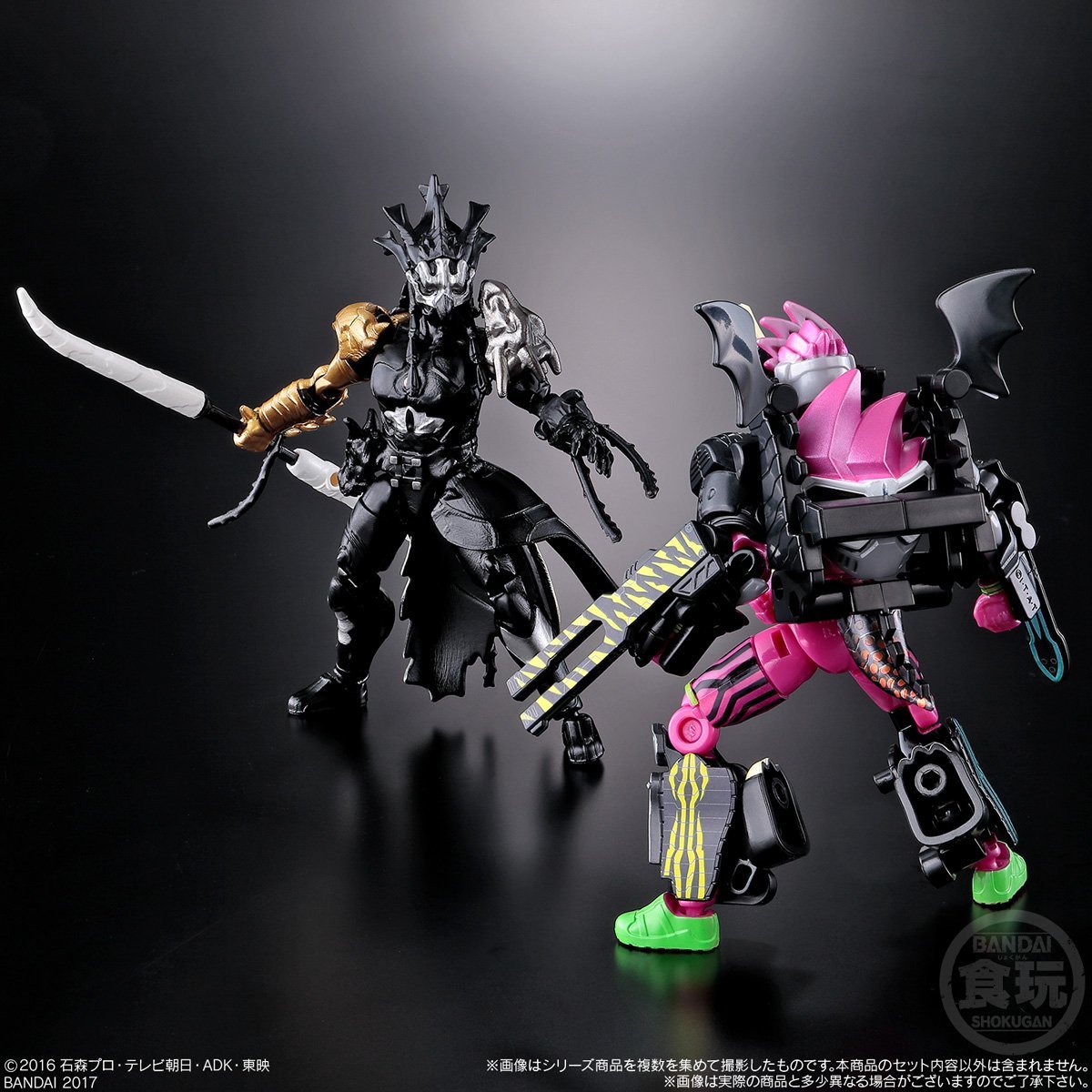 La gamme SO-DO est constituée de figurines d’environ 11 cm de haut et pour Kamen Rider Ex-Aid cela concernait jusque-là presque uniquement les héros. C’est maintenant au tour de l’ennemi de la série, les Bugster, d’entrer dans la gamme avec deux ensembles prévus pour Septembre prochain via Premium Bandai. Le premier est centré sur le personnage de Graphite et proposera trois figurines sur sa forme initiale (verte), sa forme dite Dark (noire) et sa forme Guren (rouge) au Level 99 avec plusieurs éléments interchangeables. Le deuxième proposera les soldat ennemis de base nommés Bugster Virus en six exemplaires totalement identiques avec des accessoires.