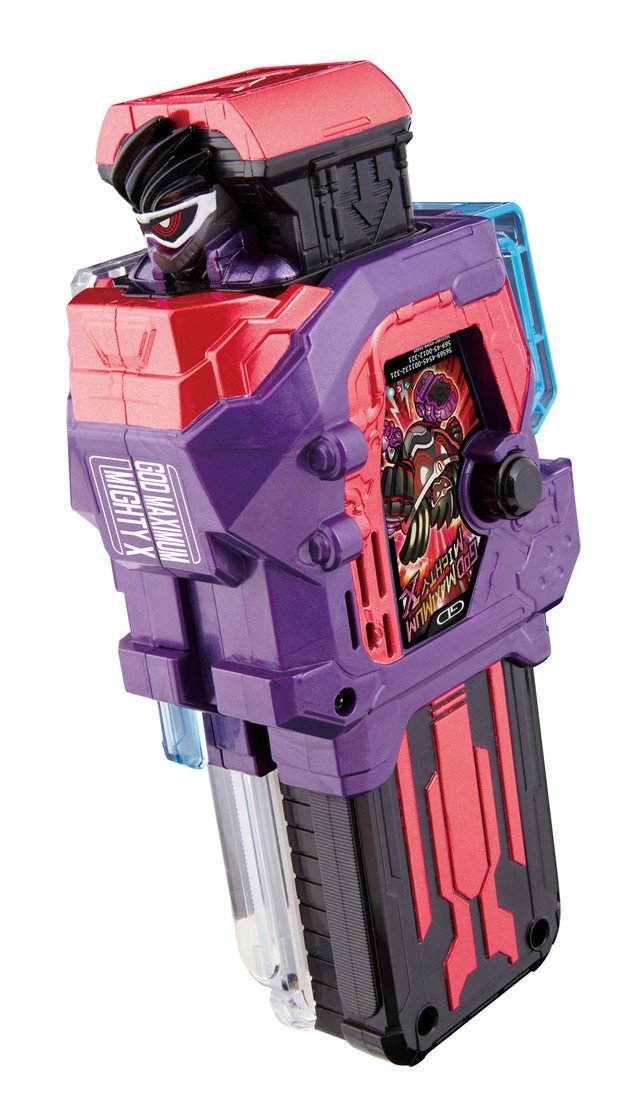 Le God Maximum Mighty X Gashat pour Kuroto et un Gashat encore inconnu pour Emu mais dont nous connaissons cependant la forme qu’il lui donne.