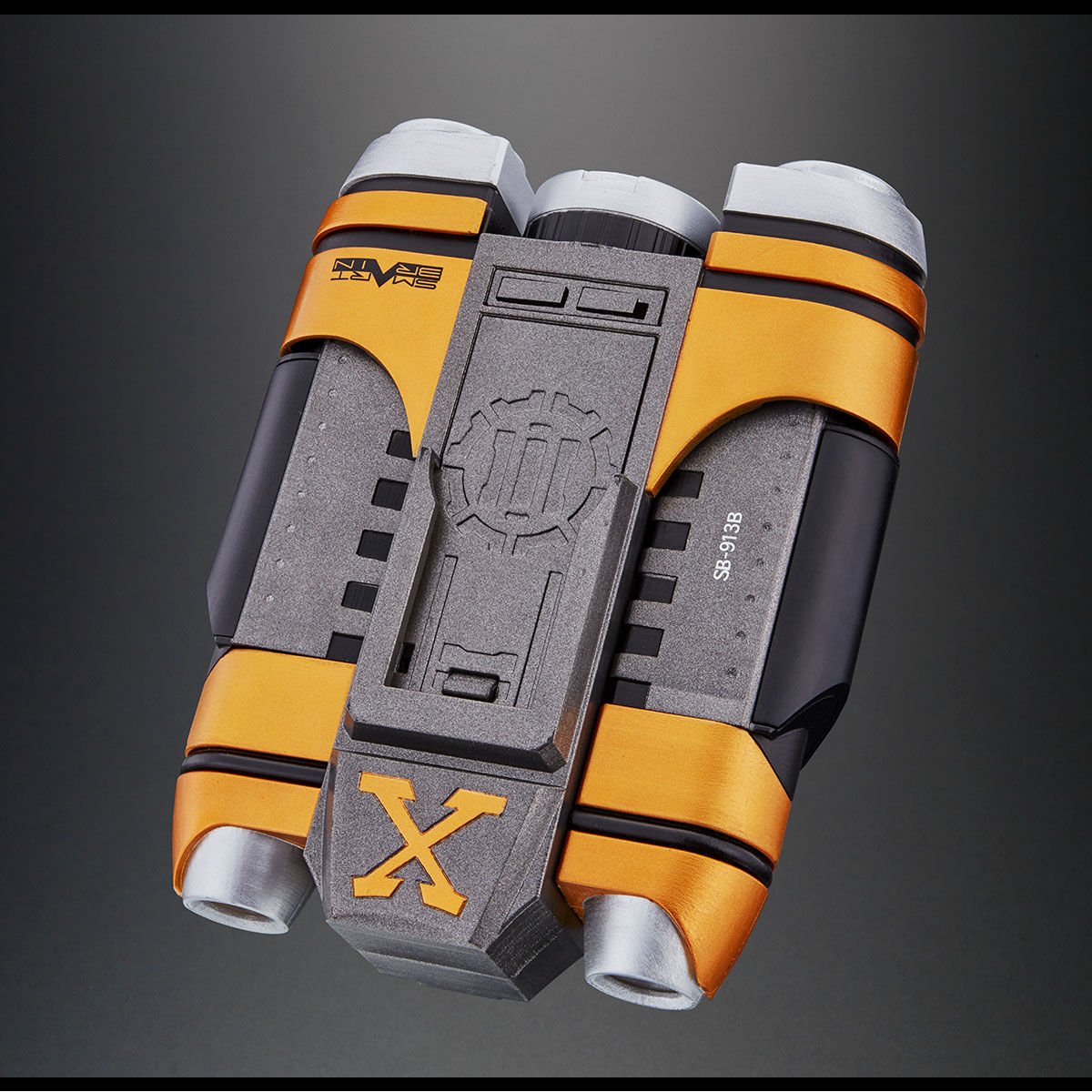Après Kamen Rider Faiz, voici le second héros de la série Kamen Rider 555 dans la gamme Complete Selection Modification prestigieuse : Kamen Rider Kaixa ! Comme pour Faiz, son équipement, le Kaixa Gear, a donc droit a son édition CSM qui sera assez exhaustive. Cette édition comportera donc le Driver (le Kaixa Phone et la boucle où le placer pour la transformation), le Shot (l’appareil photo), le Pointer (l’accessoire pour la fameuse attaque au coup de pied), le Blaygun (son arme principale aux deux modes pistolet et épée), les différents étuis où mettre tout ça (dont celui à la jambe pour le Pointer) et bien évidemment la ceinture. Le Kaixa Phone possèdera pléthore de sons dont des musiques, des chansons et des phrases des personnages de la série et divers modes d’attaques. Le Pointer et le Blaygun auront également un petit plus avec comme fonction lumière la projection de la marque spécifique en croix des attaques du héros. Tout ceci sera disponible de deux façons différentes en Avril prochain avec un ensemble complet nommé donc Kaixa Gear et un autre « allégé » avec seulement la ceinture, la boucle et le Kaixa Phone nommé Kaixa Driver.