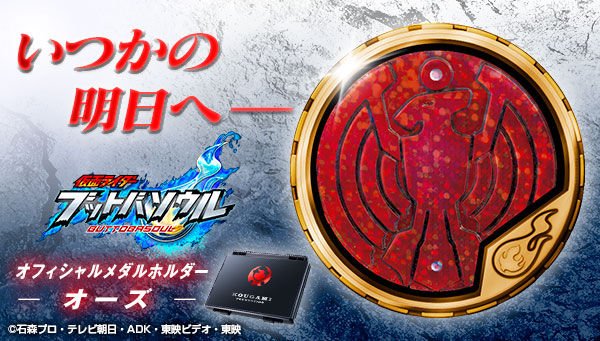 Buttobasoul est, au Japon, un jeu vidéo sur la franchise Kamen Rider sur borne d’arcade. Le jeu fonctionne via des jetons à l’effigie des héros et de leurs différentes formes et attaques. C’est un ensemble de jetons en partie basé sur la série Kamen Rider OOO qui est ici commercialisé par Premium Bandai. Disponibles en Février prochain, ces jetons représenteront donc en majorité plusieurs Core Medal utilisées par le héros éponyme qui seront : Taka, Kujaku, Condor, Kuwagata, Kamakiri, Batta, Lion, Tora, Cheetah, Sai, Gorilla, Zo, Shachi, Unagi, Tako, Ptera, Tricera et Tyranno. Le reste de l’ensemble sera constitué de jetons d’attaque et le tout sera regroupé dans un contenant qui n’est autre que le même modèle de Medal Holder que celui utilisé pour les diverses O-Medal de la série Kamen Rider OOO mais avec des motifs bien évidemment différents sur ses deux faces qui seront l’emblème de la Kougami Foundation et une illustration du héros en TaJaDor Combo.