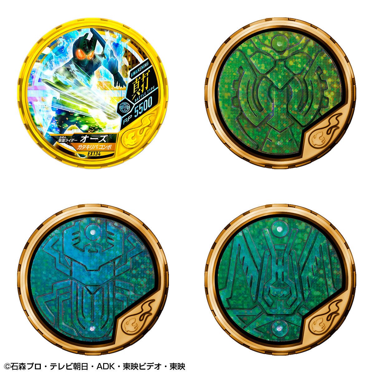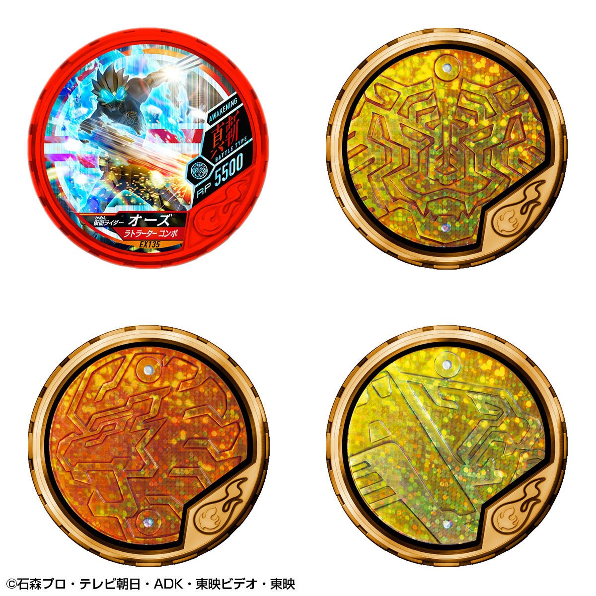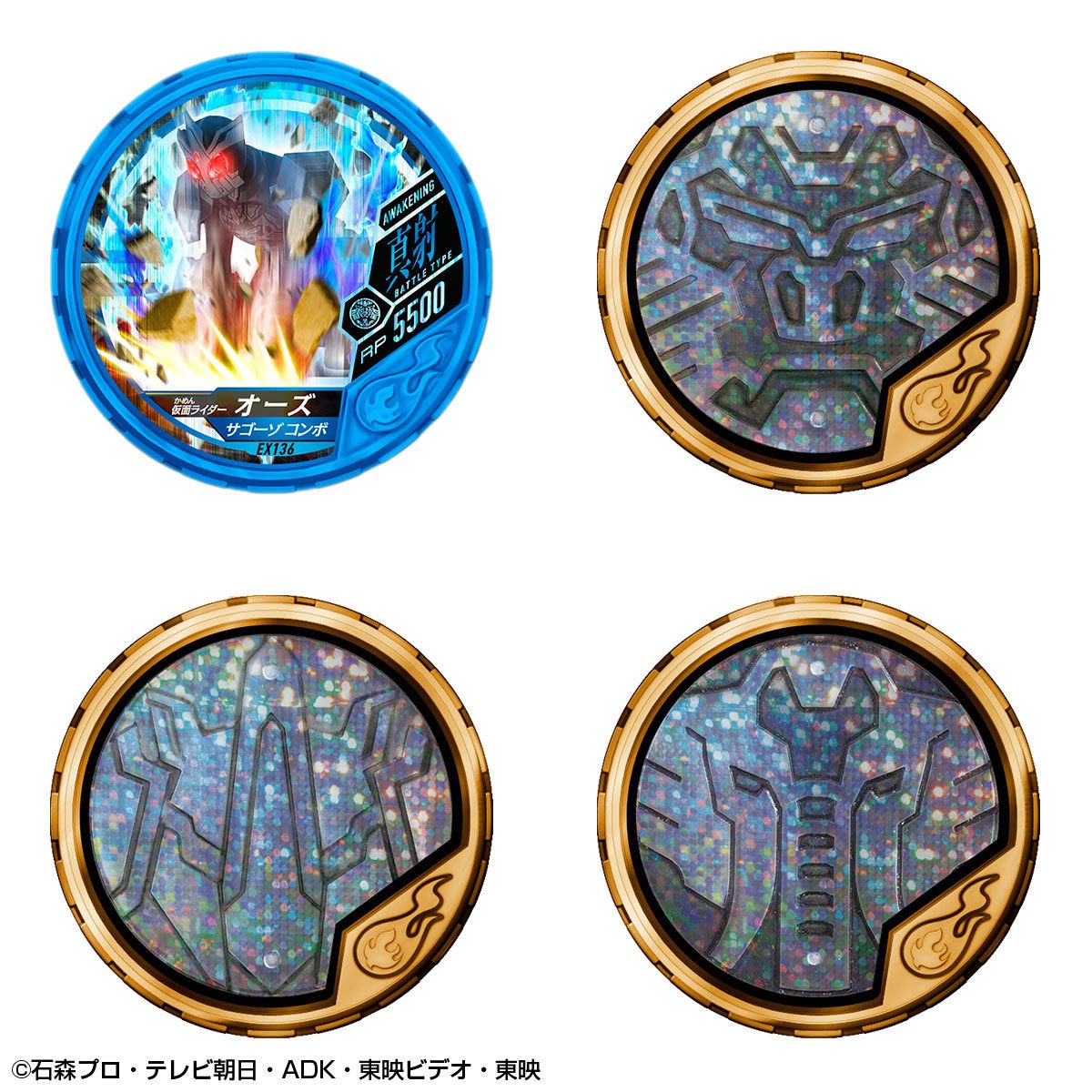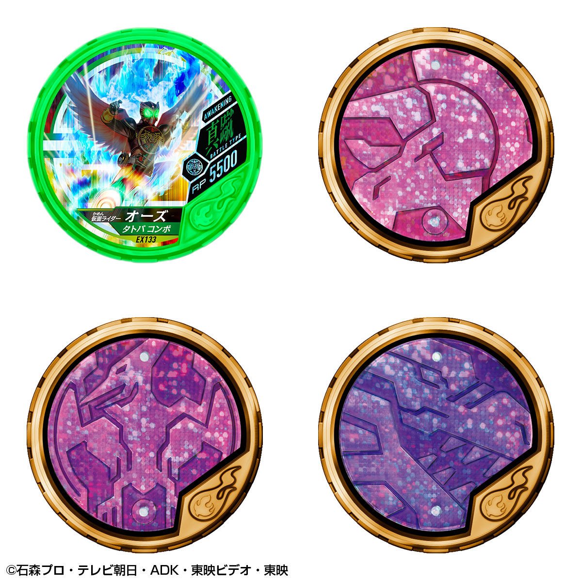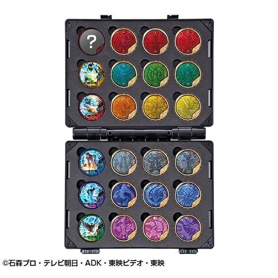 Buttobasoul is, in Japan, a video game about the Kamen Rider franchise on arcade machine. The game operates via tokens at the effigy of heroes and their different forms and attacks. This is a set of tokens in part based on the Kamen Rider OOO series which is marketed here by Premium Bandai. Available in next February, the tokens will represent in majority several Core Medal used by the eponymous hero who will be : Taka, Kujaku, Condor, Kuwagata, Kamakiri, Batta, Lion, Tora, Cheetah, Sai, Gorilla, Zo, Shachi, Unagi, Tako, Ptera, Tricera and Tyranno. The rest of the set will be constitued of attack tokens and the whole will be grouped in a container of the same model of Medal Holder as the one used for the various O-Medal from the Kamen Rider OOO series but with obviously different motifs on both sides which will be the emblem of the Kougami Foundation and an illustration of the hero in TaJaDor Combo.