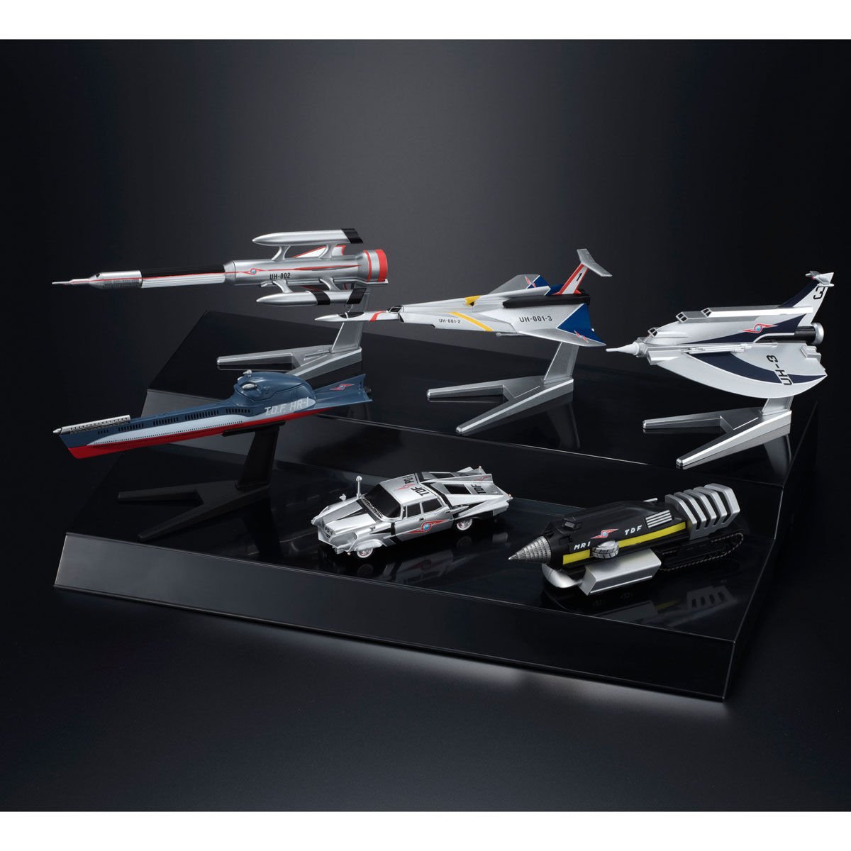 Dans la série Ultraseven débutée en 1967, le héros était aidé par une garnison, la Ultra Keibitai, qui avait divers véhicules pour accomplir sa mission. En Décembre prochain sortira via Premium Bandai un ensemble de six véhicules miniatures avec un présentoir dans la gamme Mecha Collection. Dans cet ensemble spécial Ultraseven seront présents trois aéronefs, un sous-marin et deux véhicules terrestres qui sont : le Ultra Hawk 1 (l’aéronef marqué UH-001), le Ultra Hawk 2 (l’aéronef marqué UH-002), le Ultra Hawk 3 (l’aéronef marqué UH-3), le Hydranger (le sous-marin), la Pointer (la voiture) et le Magma Riser (le char avec la foreuse). Ces six véhicules dont le plus grand fait 10 cm de long sont déjà tous sortis individuellement auparavant mais seront ici avec de meilleurs détails et finitions.