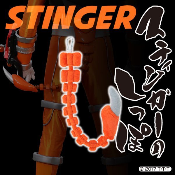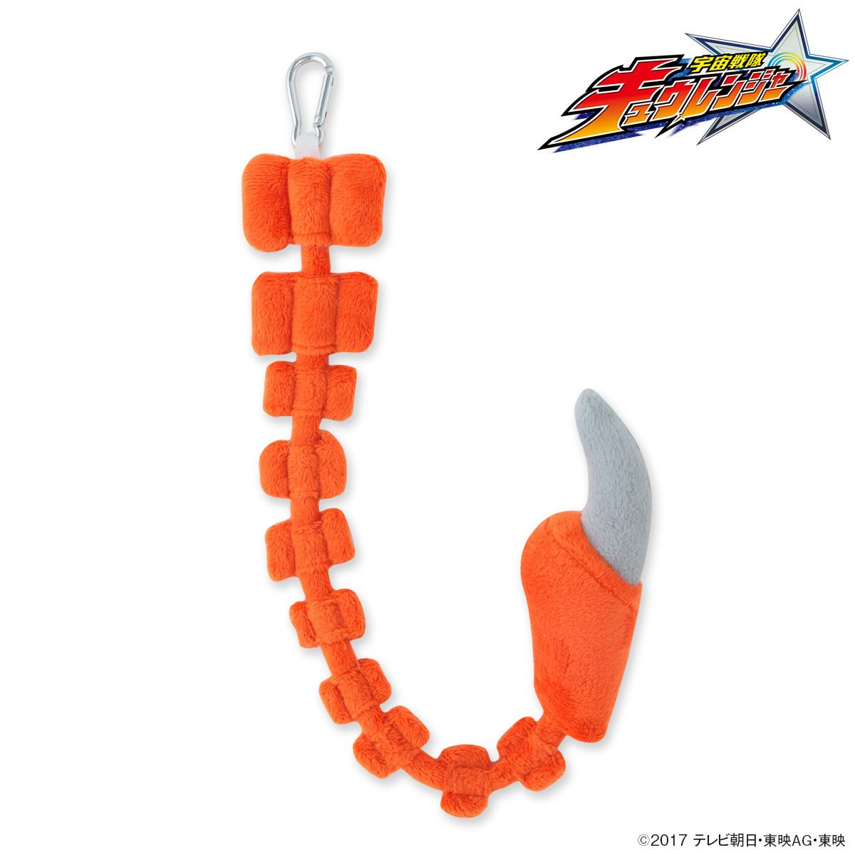 Like several plush from Kamen Rider series, here are two things from the Super Sentai franchise in the Mascot Charm range. These two products that will be available next December will be two character elements from the Uchu Sentai Kyuranger series. The first one will be the earring of Shouronpo (aka Ryu Commander) of 14 cm long and the second one will be the tail of Stinger (aka Sasori Orange) of 40 cm long.