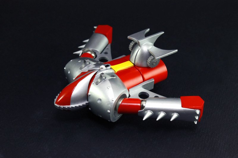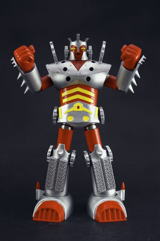 The Daibaron is the robot from the Chisana Superman Ganbaron series of 1977 and third series from the same televisual franchise as the Super Robot Red Baron and the Super Robot Mach Baron series aired between 1973 and 1975. This series follows the young hero Ganbaron against various menaces including some giants, against which he uses his powerful robot named Daibaron, composed of Hirider, a flying vehicle and Bakushin, a land vehicle. Once Daibaron formed, Ganbaron enters in the abdomen of the robot with the Toboon, his personal shuttle, in a cavity designed for this purpose and thus drives the machine against giant monsters. The brand Evolution Toy will be released in next February in its range Dynamite Action GK Limited a figure of Daibaron of 17 cm tall with some accessories as several interchangeable hands and the three vehicles Toboon, Hirider and Bakushin (but not transformable, as the figure).