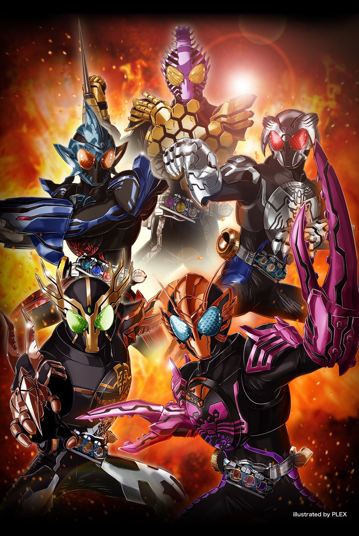 Forty-seven of the fifty-nine O-Medal present in the complete set are : Taka (hawk), Kujaku (peacock), Condor, Kuwagata (stag beetle), Kamakiri (praying mantis), Batta (grasshopper), Lion, Tora (tiger), Cheetah, Sai (rhinoceros), Gorilla, Zo (elephant), Shachi (killer whale), Unagi (electric eel), Tako (octopus), Ptera (pteranodon), Tricera (triceratops), Tyranno (tyrannosaurus), Cobra, Kame (turtle), Wani (crocodile), Super Taka, Super Tora, Super Batta, Imagin, Shocker, Same (shark), Kujira (blue whale), Ookamiuo (atlantic wolf fish), Kamen Rider X, Kamen Rider Amazon, Kamen Rider Stronger, Kangaroo, Panda, Yadokari (hermit crab), Shika (stag), Gazelle, Ushi (bull), Seiuchi (walrus), Shirokuma (polar bear), Penguin, Mukade (centipede), Hachi (bee), Ari (ant), Ebi (shrimp), Kani (crab) and Sasori (scorpion). For the remaining twelve O-Medal, the black versions of Ebi, Kani and Sasori come from the movie Kamen Rider x Kamen Rider OOO & Double Feat. Skull : Movie Taisen Core of 2010, the versions with the silver contour of Tora, Taka, Kujaku, Condor, Kuwagata, Kamakiri and Batta come from the movie Kamen Rider Heisei Generations Final : Build & Ex-Aid with Legend Rider of 2017 and versions cracked and broken of Taka come from the end of the Kamen Rider OOO series.