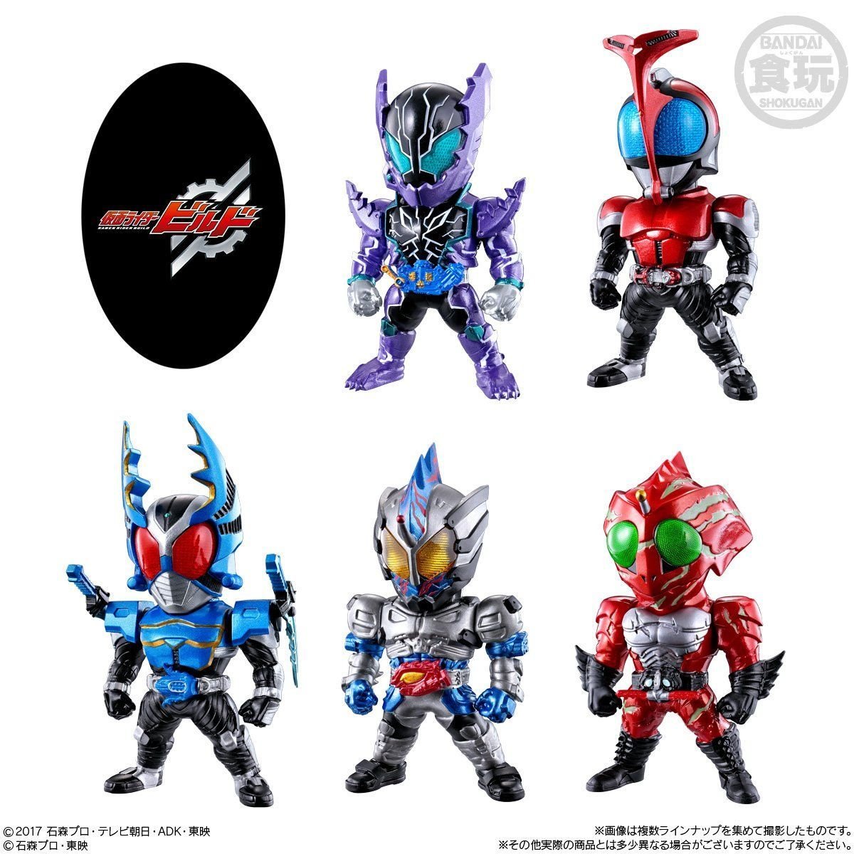 Voici un ensemble de figurines de 6 cm provenant de la franchise Kamen Rider, dixième dans la gamme CONVERGE, qui sera disponible en Juillet prochain. Cet ensemble numéro 10 sera constitué de Kamen Rider Rogue, Kamen Rider Kabuto, Kamen Rider Gatack, Kamen Rider Amazon Neo, Kamen Rider Amazon Alpha et une autre figurine encore inconnue provenant de la série Kamen Rider Build. Cet ensemble sera vendu sous le même principe que les produits Candy Toy. Dans le cas présent, c’est un ensemble de dix figurines où il y a au moins une figurine de chaque de celles qui sont présentées mais où les figurines restantes de l’ensemble sont des exemplaires supplémentaires distribués au hasard.