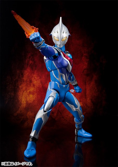 This 16 cm ULTRA-ACT of Ultraman Nexus Junis Blue has several different hands, replacement bracers for both arms and some parts reproducing the effects of his various attacks.