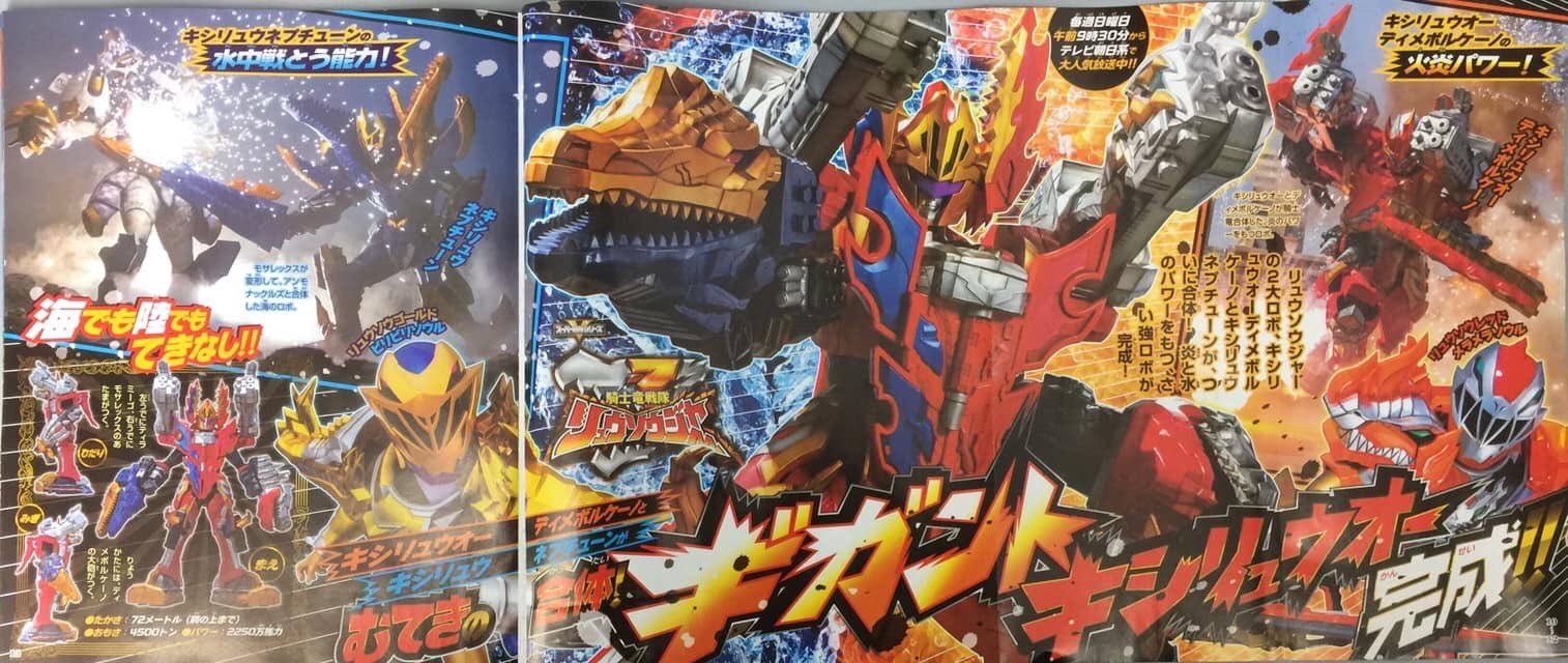 Next, Kishiryuoh, Dimevolcano and Kishiryuneptune’s combinaison : Gigant Kishiryuoh. It will crush its enemies into Tyramigo and Mosarex’s jaws !