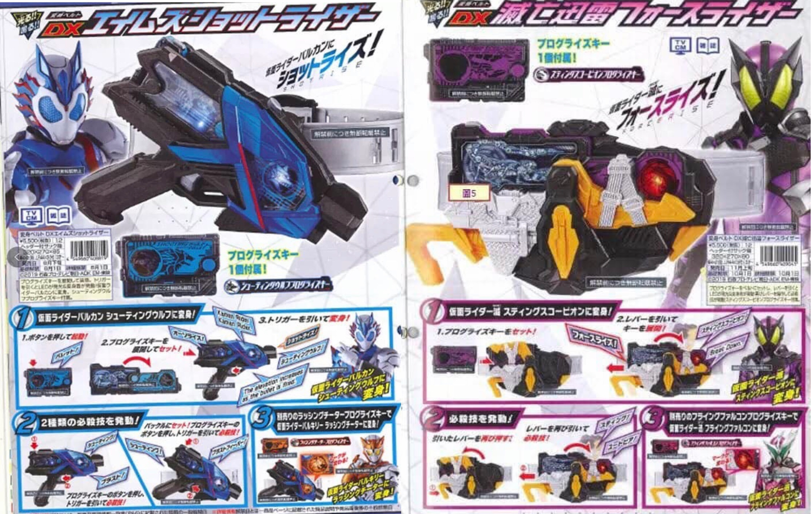 The Zero-One Driver for Kamen Rider Zero-One, the Aims Shot Riser for Kamen Rider Vulcan and Valkyrie, the Force Riser for Kamen Rider Horobi and Jin.