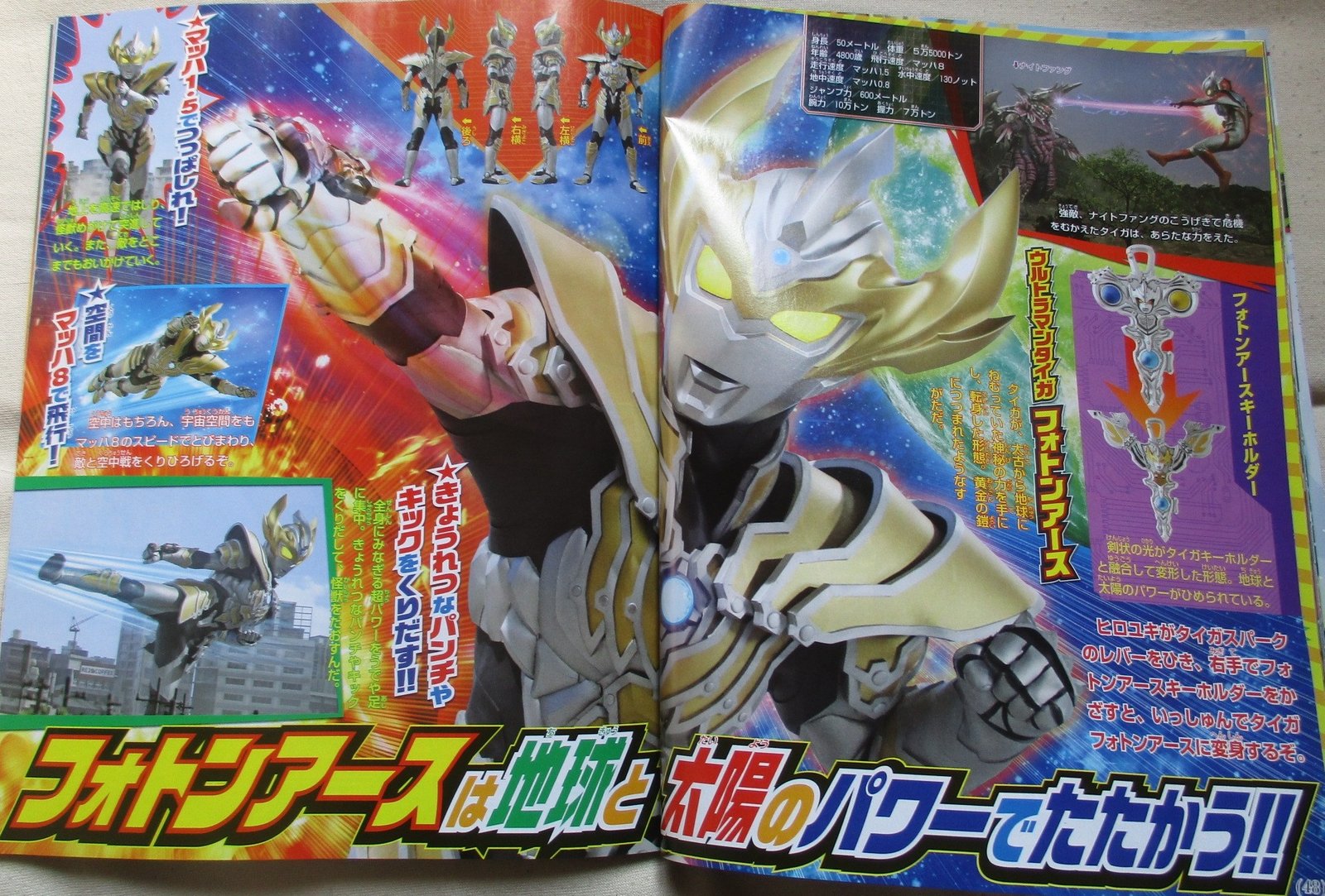 Thanks to the Photon Earth Keyholder, Taiga will evolve into Taiga Photon Earth. Thanks to this powerful form, he can fire the mighty Aurum Strium beam. His running speed is at mach 1.5 and his flying speed is at mach 8.